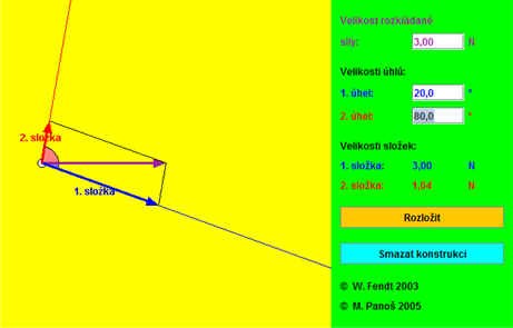Otvorte si aplet rozklad sily na zložky z adresy: http://www.walter-fendt.de/ph14cz/forceresol_cz.htm.