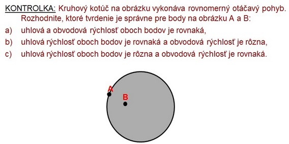 Vedieť napísať vzťahy pre uhlovú rýchlosť a uhlové zrýchlenierovnomerného otáčavého pohybu vrovinea prerovnomerne zrýchlený (spomalený) otáčavý pohyb v rovine.